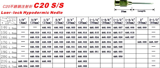 獸用不銹鋼注射針 C20系列